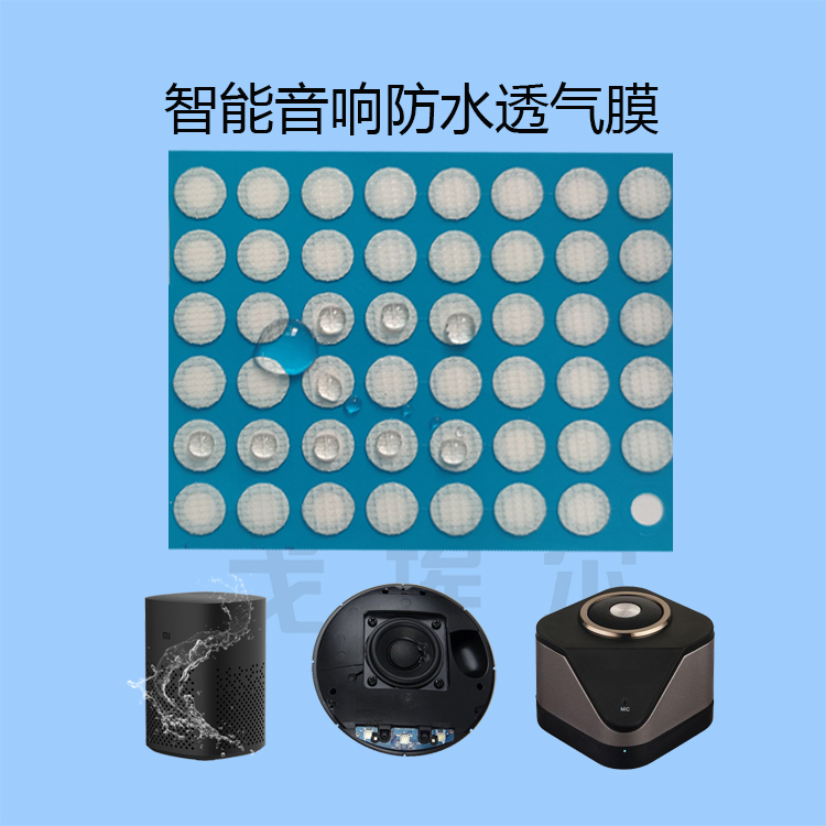 所以戈埃爾防水透聲膜一般均固定連接在AI智能音箱防水罩正面中部的上下兩側,防水透聲膜為圓形、跑道形、方形等三種結構,它由eptfe高分子防水材料所構成??梢詫崿F既防塵防水,又透空氣透聲音,同時還能防潮防腐蝕、降溫散熱、泄壓排氣、氣壓平衡等。