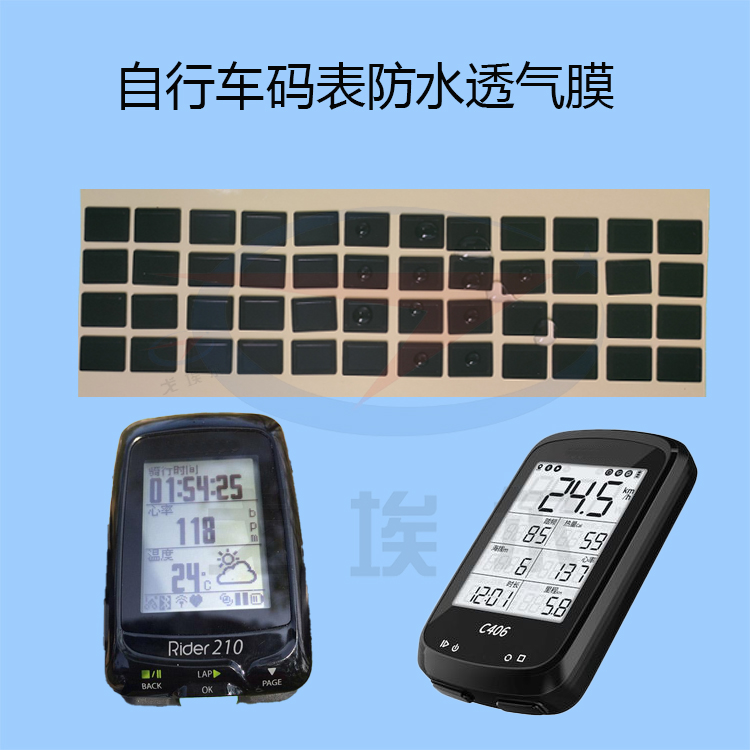 戈埃爾防水透氣膜都是采用特殊材質,運用高強度PC塑料材料制成,防水透氣,可耐零下30攝氏度的低溫,耐沖擊,實現電子碼表防水、防塵、防摔、耐磨的保護。而在電子碼表的防水殼鏡頭窗口部分,采用了防水透氣膜材料,并進行了AR(防反射)和AF(防指紋)的雙層光學鍍膜處理,即使再下很大的雨,雨水也不會浸入電子碼表內部。也能清晰的看清楚碼表的數值。這樣對用戶在下雨天使用自行車提供更多的便利。